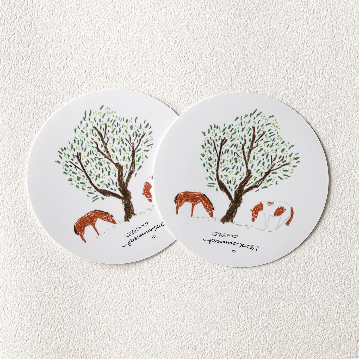 デザインは坂出市在住の画家・山口一郎さんによる書き下ろしイラスト。五色台で大切に育てたオリーブや、ポニーがのんびり過ごす癒しの庭をモチーフにしています。